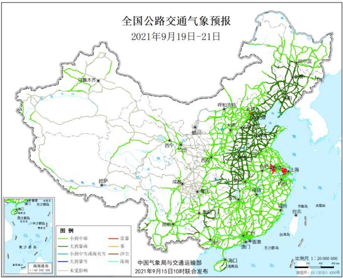2021年中秋節(jié)假期全國(guó)主要公路交通氣象預(yù)報(bào)圖