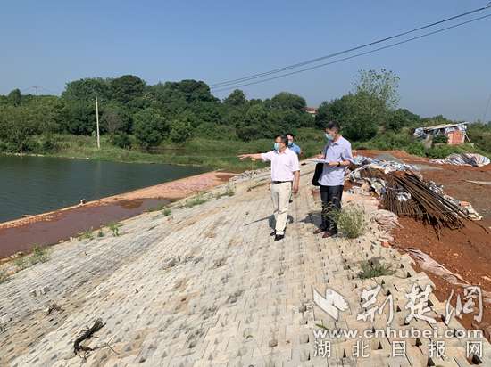 圖為審計(jì)人員查看防洪加固工程現(xiàn)場(chǎng)。通訊員 供圖