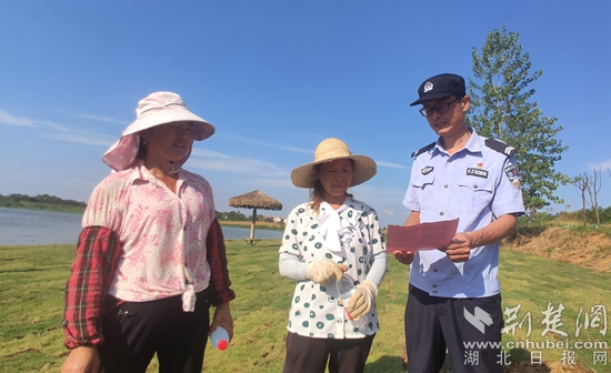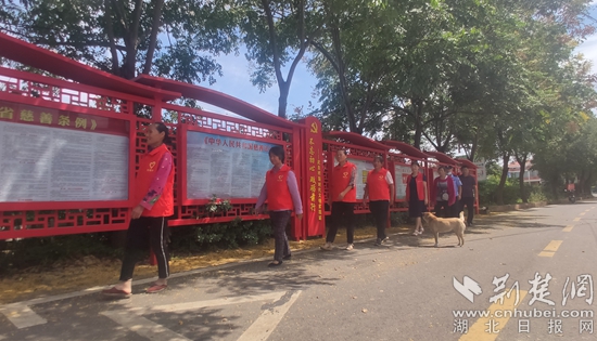 “開三輪車要戴頭盔啊,也不能載人,安全第一……”9月15日傍晚,鄂州市華容區(qū)段店鎮(zhèn)武圣村“武圣阿嫂”巡防隊(duì)員王桂芳、張校珍身穿紅馬甲,在進(jìn)出村路口勸導(dǎo)過往村民。