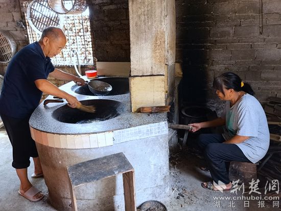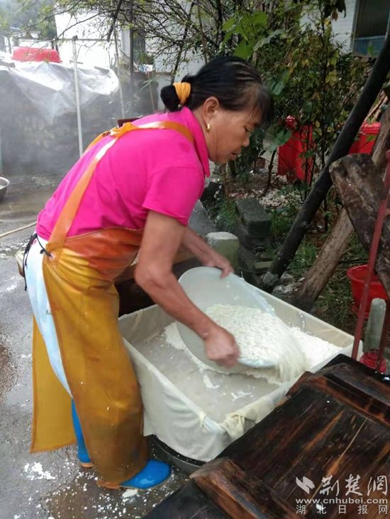 廖先文夫妻倆正在用傳統(tǒng)工藝制作豆腐制品。通訊員供圖