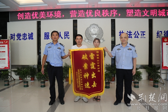荊楚網(wǎng)(湖北日報網(wǎng))訊(通訊員 談畫琳 劉俊云)“小偷被抓獲,大大增強了我們轄區(qū)居民的安全感!”9月22日,黃石市京華路社區(qū)社區(qū)干部和大上海小區(qū)物業(yè)工作人員將一面印有“雷霆出擊 破案神速”的錦旗送到黃石市公安局西塞山分局民警的手中,感謝民警破獲小區(qū)系列入室盜竊案。