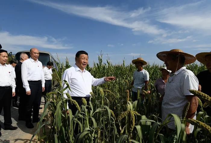 今年9月13日,正在陜西榆林米脂縣考察的習(xí)近平途中臨時(shí)下車,走進(jìn)田間,察看谷子、糜子、玉米長(zhǎng)勢(shì),同正在田間勞作的老鄉(xiāng)拉家常,詢問他們生產(chǎn)經(jīng)營(yíng)、家庭收入等情況。