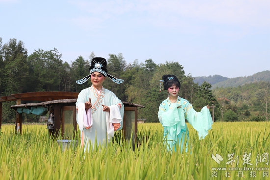 崇陽(yáng)縣地方特色戲提琴戲走上田間地頭。陶然 攝