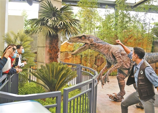 北京環(huán)球影城主題公園,游客在侏羅紀世界努布拉島主題景區(qū)感受奇遇迅猛龍互動體驗 新華社記者 任超 攝