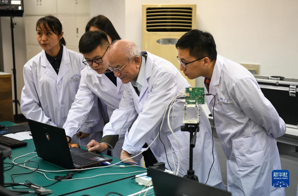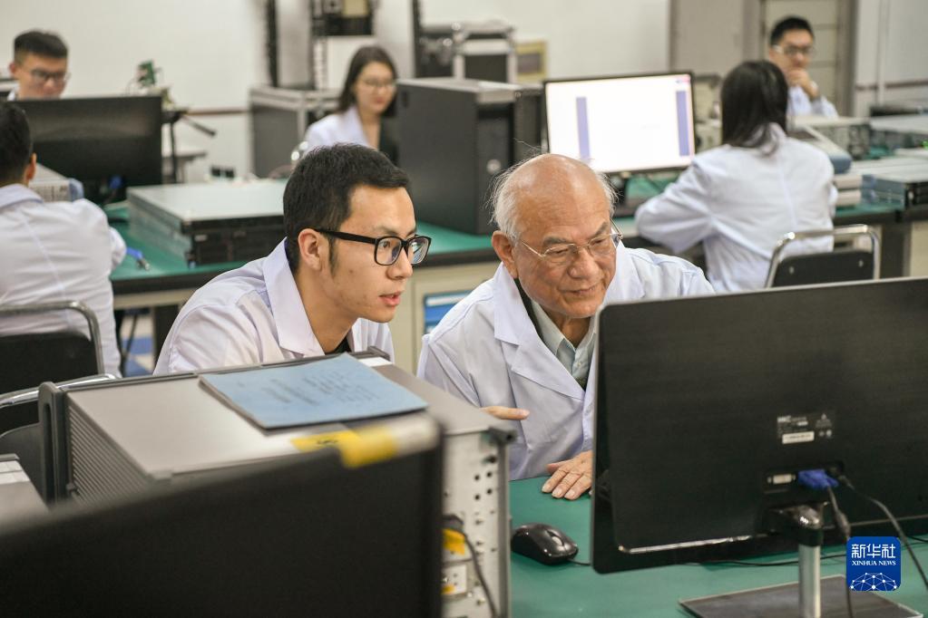 劉永坦(前右)在哈爾濱工業(yè)大學(xué)實(shí)驗(yàn)室鉆研雷達(dá)技術(shù)(2018年12月25日攝)。新華社記者 王松 攝
