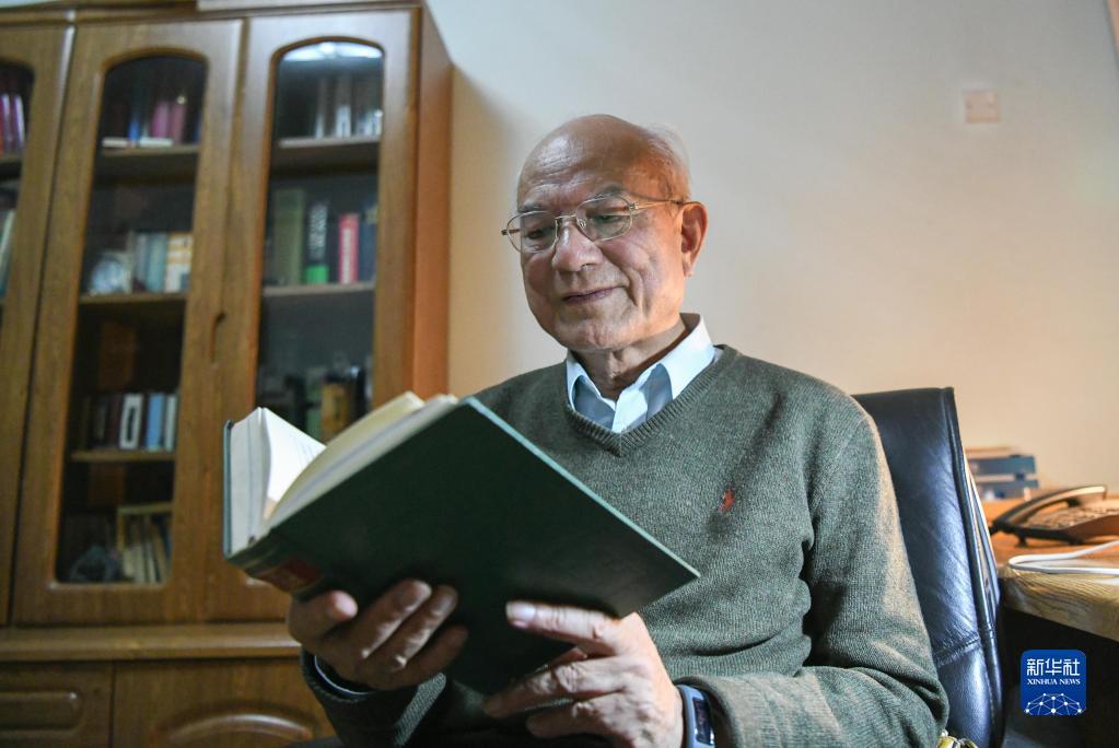 劉永坦在家中看書(2018年12月25日攝)。新華社記者 王松 攝