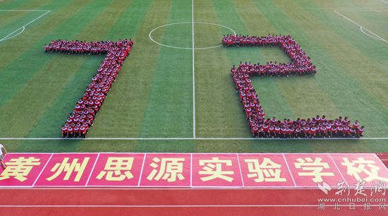 學(xué)生們擺出“中國”“72”等字樣,向祖國獻禮。通訊員 供圖