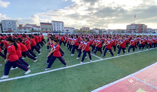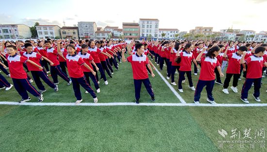 9月29日下午,黃州區(qū)思源實驗學(xué)校七年級的500余名學(xué)生進行團體操展演。通訊員 供圖