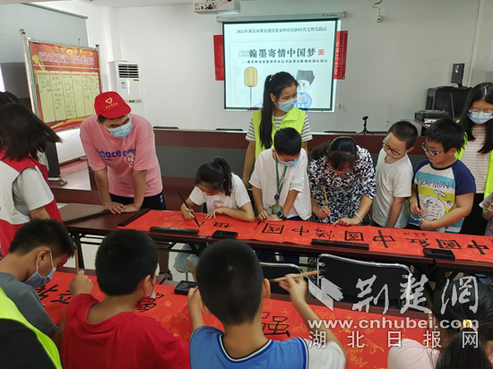 荊楚網(wǎng)(湖北日報網(wǎng))訊(通訊員 余華華)10月2日,黃石市黃石港區(qū)延安嶺社區(qū)新時代文明實踐站開展“翰墨寄情中國夢”活動。