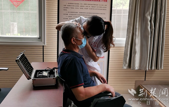 隨后,醫(yī)務(wù)人員給大家免費(fèi)測量血壓、血糖、疫情常態(tài)化防控方面知識、慢病健康知識咨詢等。余臘梅還為社區(qū)的居民們提供免費(fèi)視力普查及驗(yàn)光、眼底檢查等。