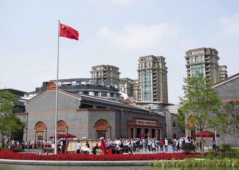 △觀眾排隊進(jìn)入位于上海的中共一大紀(jì)念館參觀(2021年6月12日攝)。