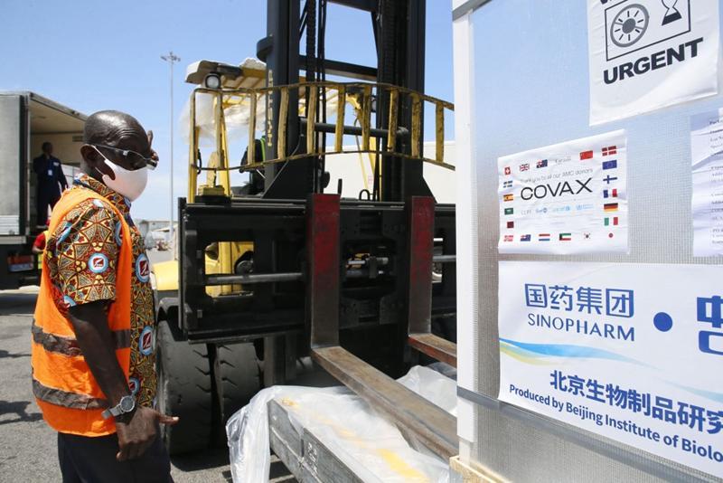 △工作人員在科特迪瓦阿比讓國際機(jī)場轉(zhuǎn)運(yùn)中國國藥集團(tuán)通過“新冠疫苗實(shí)施計劃”供應(yīng)的新冠疫苗(2021年9月18日攝)。