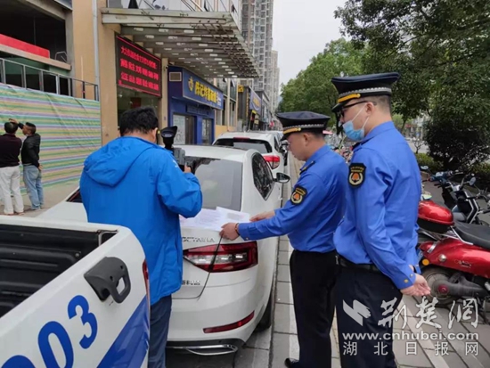 城管局執(zhí)法人員現(xiàn)場核對備案資料。通訊員 供圖