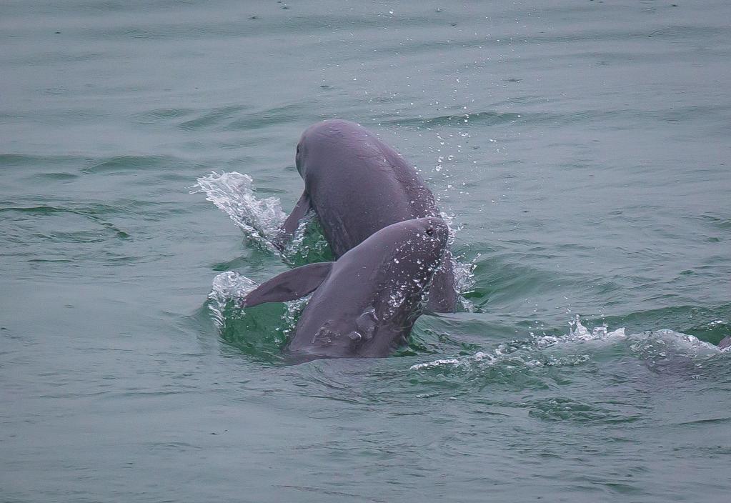 2021年5月,長江宜昌江段葛洲壩下游附近出現(xiàn)成群長江江豚。新華社記者肖藝九攝