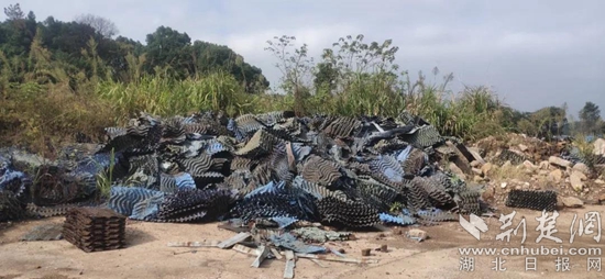 原來,9月底,大冶市檢察院接到群眾舉報,某地堆放有大量垃圾 。辦案檢察官立即前往現(xiàn)場查看,發(fā)現(xiàn)某企業(yè)院墻外一處廢棄地上,露天堆放有大量工業(yè)固體廢棄物,疑似脫硝波紋板(塑膠)和除塵布袋,其中藍(lán)色脫硝波紋板數(shù)量較多,約數(shù)百噸,給周邊居民日常生活和生態(tài)環(huán)境造成了不良影響。