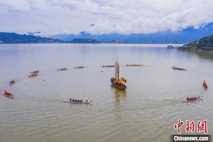 大賽前舉行龍舟游江儀式?!÷櫵?攝
