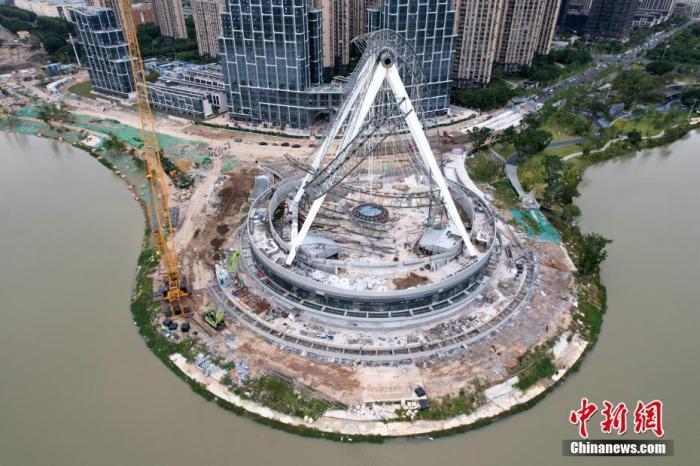 10月18日下午,福建省福州市晉安湖公園旁一在建摩天輪發(fā)生垮塌事故,上部轉(zhuǎn)輪變形脫落,目前暫未有人員傷亡報告。警方和公園保安在現(xiàn)場維持秩序,具體事故原因正在調(diào)查中。(無人機照片) 中新社記者 王東明 攝
