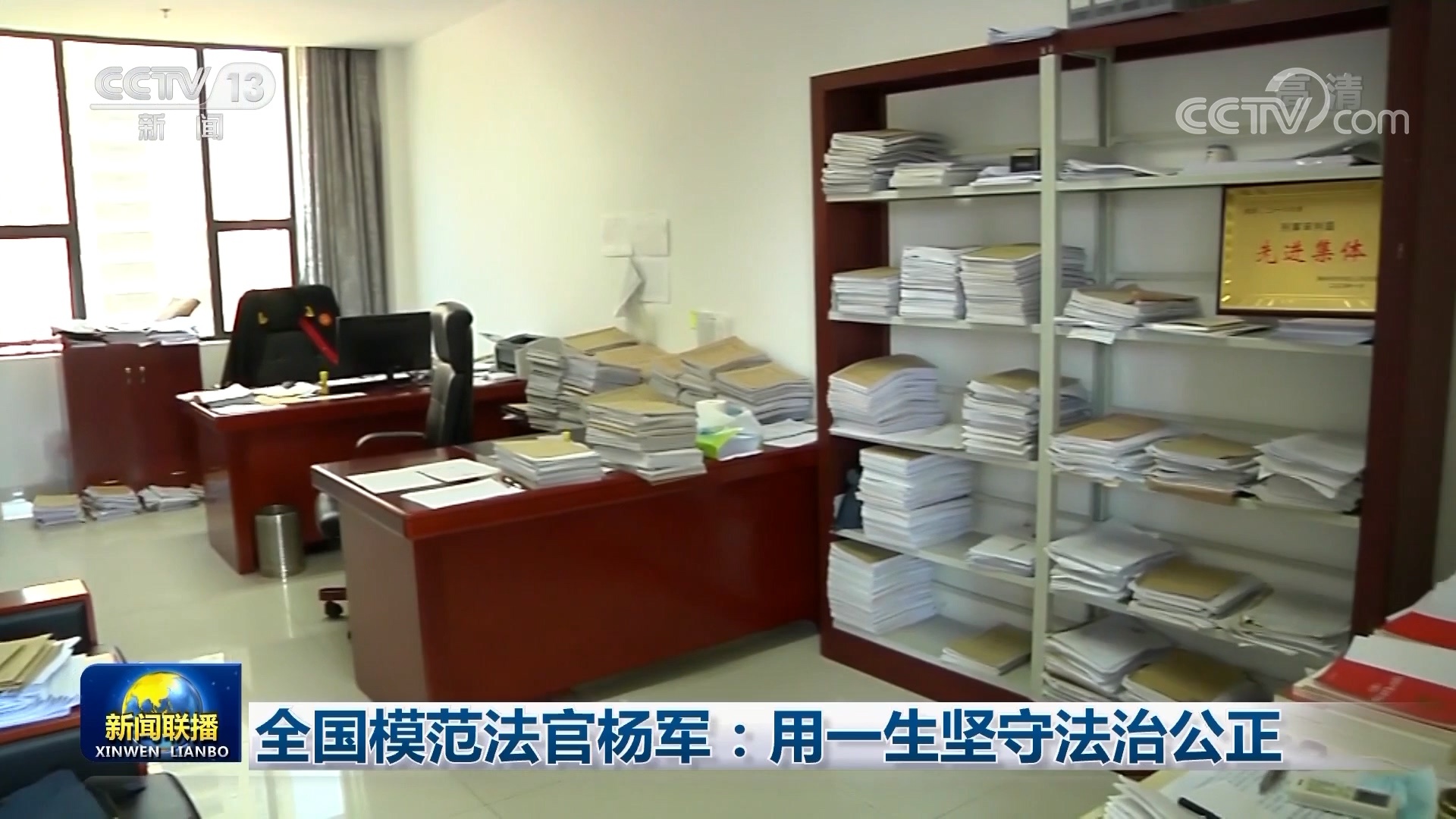在楊軍的辦公室,辦公桌、書柜、地面到處都是一摞摞的卷宗,稿紙上面寫著楊軍生前的工作安排。