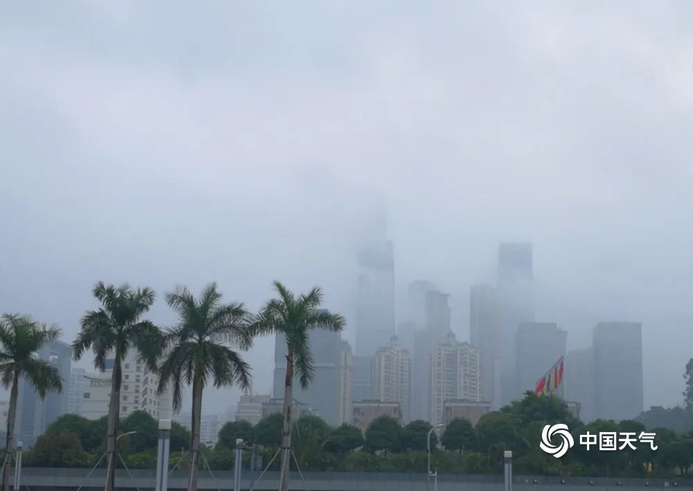△10月20日,廣西南寧主城區(qū)雨霧蒙蒙,高層樓宇若隱若現(xiàn)。(圖/中國天氣網(wǎng))
