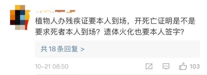 針對“植物人辦殘疾證需本人到場”一事,有評論稱,社會對弱勢群體的態(tài)度往往決定它的文明程度,破解殘疾人的“辦證難”,不僅能極大提升政務服務效能,更能體現(xiàn)文明社會的人文關懷,這就是此案帶給人們的鏡鑒警示。(完)