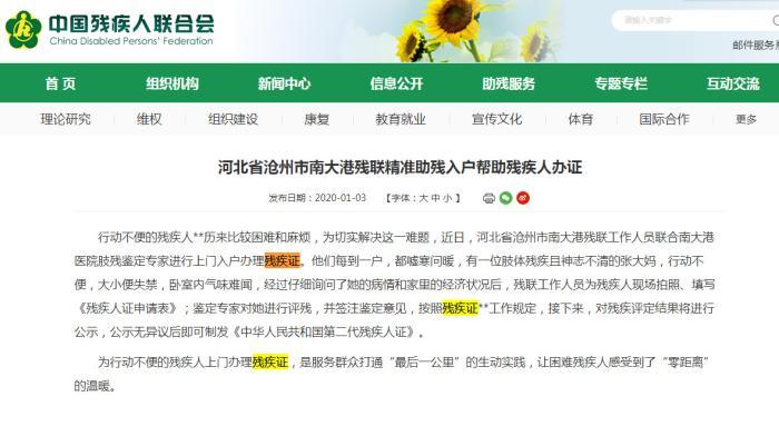 在地方,也有不少為殘疾人上門辦證的案例。河北省滄州市殘聯(lián)曾在2020年介紹一例入戶幫助殘疾人辦證的案例:一位肢體殘疾且神志不清的張女士,經過仔細詢問了其病情和家里經濟狀況后,殘聯(lián)工作人員為其進行現(xiàn)場拍照等,鑒定專家對其進行評殘。