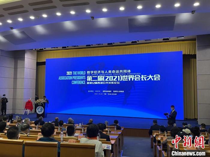 中新網(wǎng)杭州10月24日電(黃齡億)以“數(shù)字經(jīng)濟(jì)與人類命運共同體”為主題的第二屆(2021)世界會長大會暨第12屆西湖公共關(guān)系論壇于23日—24日在浙江杭州舉行。大會采用“線上+線下”相結(jié)合的方式,300余位來自各國政府、海內(nèi)外商協(xié)會會長以及行業(yè)機構(gòu)、高校智庫、科研機構(gòu)的代表,立足全球視野,共商數(shù)字賦能的城市治理和數(shù)字產(chǎn)業(yè)化,共謀人類命運共同體建設(shè)。