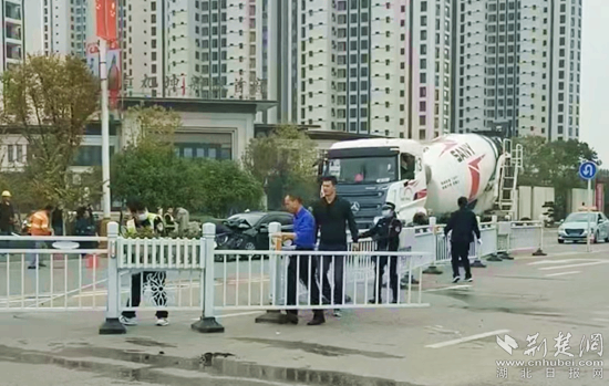 黃梅縣城管執(zhí)勤人員現(xiàn)場處置被撞護欄。通訊員 供圖