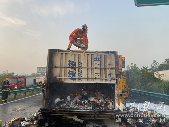事故未造成人員傷亡,但造成道路通行中斷,擁堵路段長達(dá)5公里左右。接到險情后,消防、高速公安、路政等部門到場迅速展開救援。據(jù)駕駛員介紹,此車是從鄂州葛店開往黃石下陸,貨廂內(nèi)裝載的都是快遞件。目前,事故損失還在清理核實中。