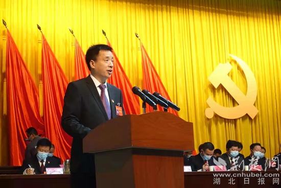 陽新縣委書記萬鼎正在作“加快建成武漢城市圈同城化發(fā)展示范縣”報告。 通訊員 張文俊 供圖