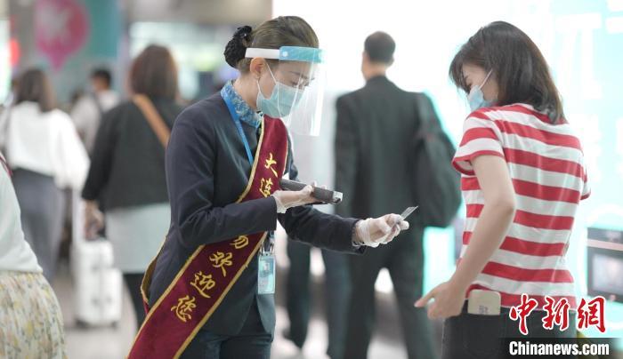 圖為機(jī)場工作人員服務(wù)旅客出行?!〈筮B機(jī)場供圖