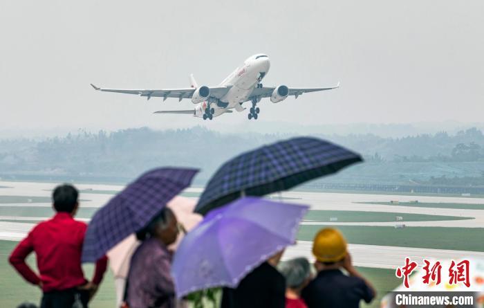 國航錦禮號彩繪飛機從成都天府國際機場起飛?!?供圖