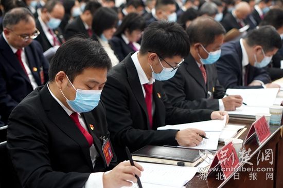 代表們認(rèn)真審閱報(bào)告。記者 呂鑒蕾 攝