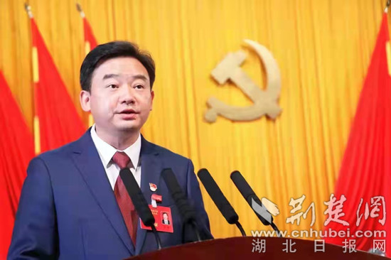 武穴市委書記胡昊作報告。通訊員李曙勝 攝