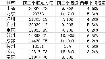 GDP總量排名前十的城市三季度經(jīng)濟數(shù)據(jù)目前均已公布。