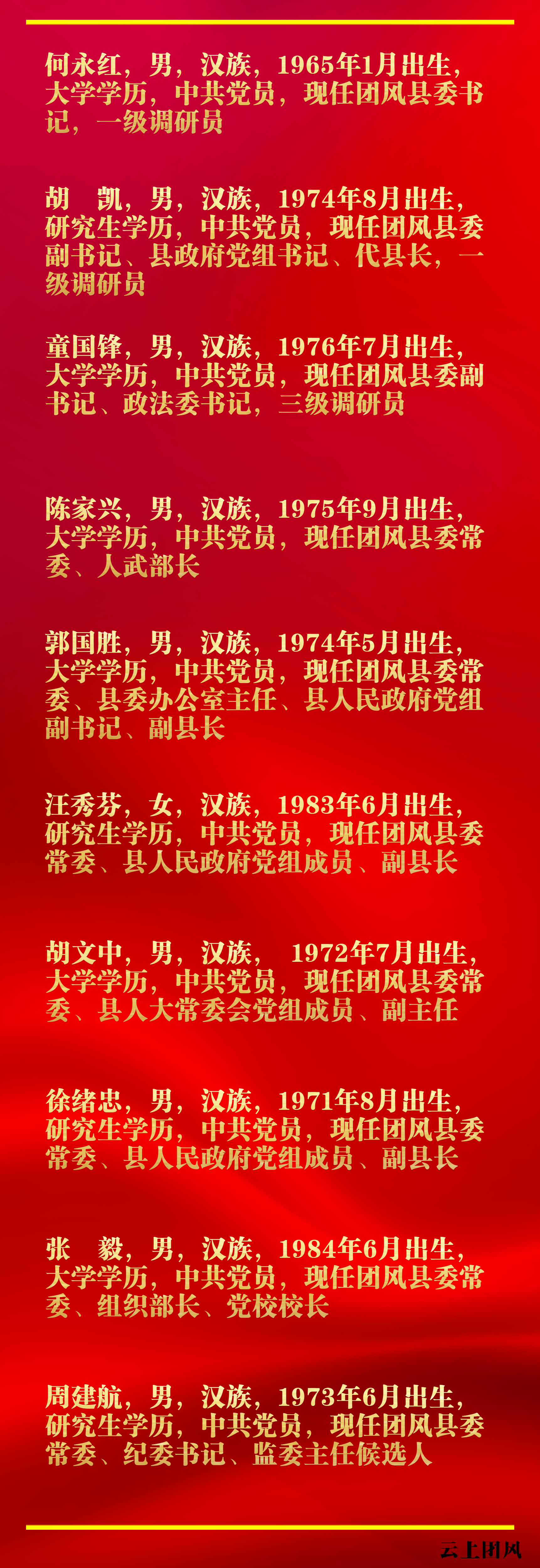 10月29日,中國(guó)共產(chǎn)黨團(tuán)風(fēng)縣第六屆委員會(huì)舉行第一次全體會(huì)議。會(huì)議選舉產(chǎn)生了中國(guó)共產(chǎn)黨團(tuán)風(fēng)縣第六屆委員會(huì)書記、副書記、常務(wù)委員。