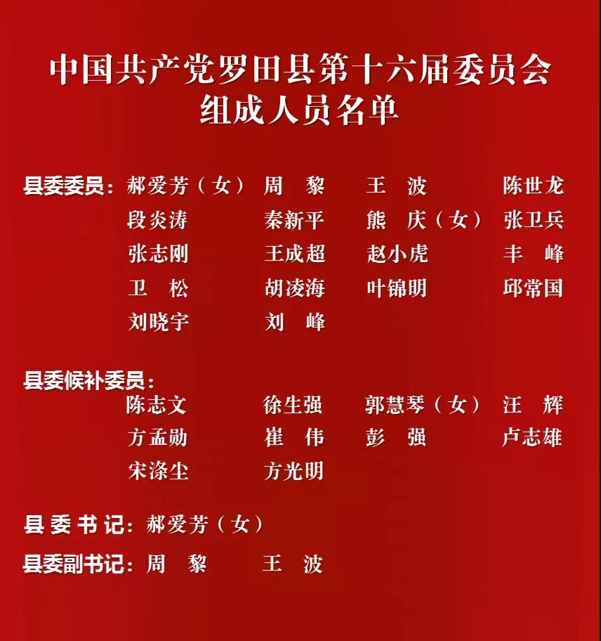 10月27日上午,中國(guó)共產(chǎn)黨羅田縣第十六屆委員會(huì)舉行第一次全體會(huì)議,選舉產(chǎn)生中共羅田縣第十六屆委員會(huì)書(shū)記、副書(shū)記。