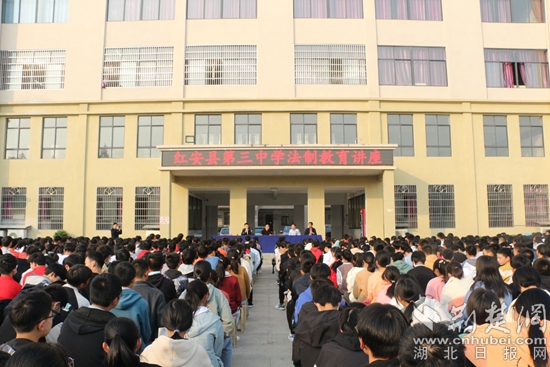 “法網(wǎng)恢恢,疏而不漏,打架斗毆、網(wǎng)絡(luò)詐騙等這些行為會(huì)受到法律的制裁,還會(huì)影響個(gè)人的聲譽(yù)……” 10月28日,紅安三中在該校實(shí)驗(yàn)樓開展法制安全教育講座,該校高一、高二年級(jí)師生參加活動(dòng)。