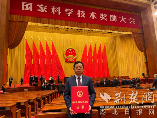 羅利軍在人民大會堂手捧國家科學(xué)技術(shù)進(jìn)步獎證書。 通訊員 供圖