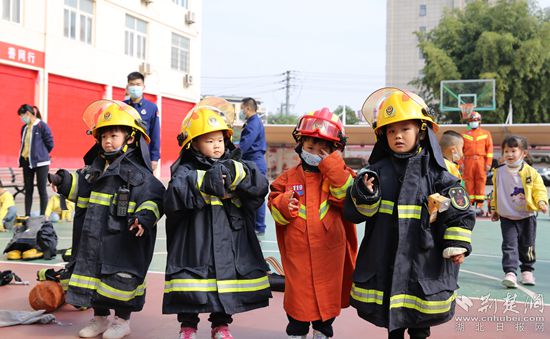 小朋友們試穿滅火防護(hù)服。通訊員 供圖