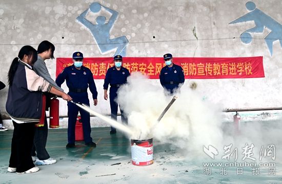 隨后,圍繞校園火災特點和危害,消防人員采用簡潔易懂的語言就火災危害性、校園防火注意事項及如何正確撥打“119”報警電話、如何在火場中逃生和自救等消防安全常識進行了講解,并手把手教學生操作使用滅火器撲滅初起火災,現場學習氛圍十分濃厚。