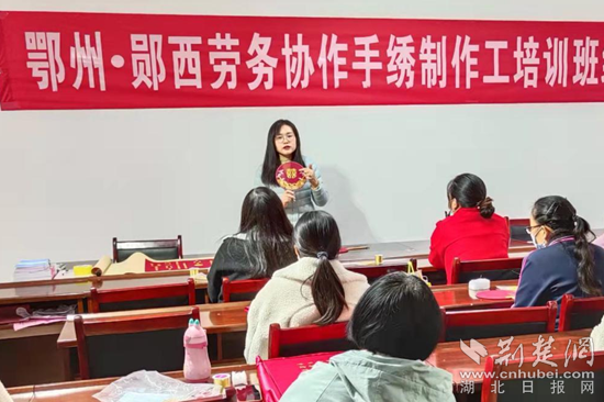 鄖西縣隸屬湖北省十堰市,是牛郎織女傳說的起源地,有著“天上七夕,人間鄖西”的美譽(yù),旅游資源豐富。此次勞務(wù)協(xié)作培訓(xùn)班便是依托了當(dāng)?shù)厣裨拏髡f資源,結(jié)合當(dāng)?shù)匕徇w安置區(qū)留守婦女較多的現(xiàn)狀,開展手繡制作工培訓(xùn),由鄂州市就業(yè)勞動中心特聘武漢市劉小紅刺繡藝術(shù)文化有限公司教師全程授課。