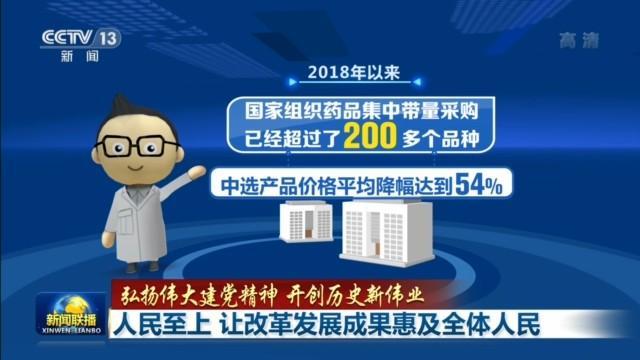 讓病有所醫(yī)、醫(yī)有所保,健康中國(guó)建設(shè)惠及千家萬(wàn)戶。組織藥品集中帶量采購(gòu)、調(diào)整國(guó)家醫(yī)保藥品目錄、改革支付方式……2018年以來(lái)國(guó)家組織藥品集中帶量采購(gòu)超過(guò)200多個(gè)品種,中選產(chǎn)品價(jià)格平均降幅達(dá)到54%,減輕群眾就醫(yī)、用藥負(fù)擔(dān)。