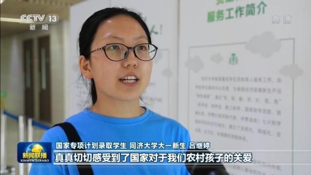國(guó)家專項(xiàng)計(jì)劃錄取學(xué)生 同濟(jì)大學(xué)大一新生 呂繼婷:真真切切感受到了國(guó)家對(duì)我們農(nóng)村孩子的關(guān)愛(ài),之前申請(qǐng)了國(guó)家助學(xué)貸款,現(xiàn)在還可以申請(qǐng)學(xué)校的助學(xué)金和困難補(bǔ)助,也沒(méi)有了后顧之憂。我一定好好學(xué)習(xí)回報(bào)國(guó)家的培養(yǎng)。