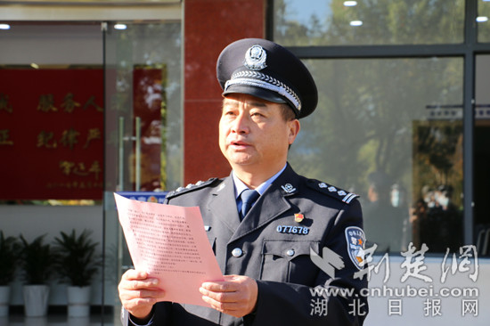 團風縣委委員、副縣長候選人,公安局黨委書記、局長葉青峰出席啟動儀式并作講話,全體局黨委委員、機關各警種、團風水陸派出所負責人及派出所、巡邏、交警、刑偵等警種民輔警約70人參加啟動儀式。