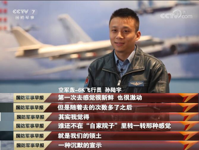 空軍轟-6K飛行員 孫陸宇:作為飛行員怎么樣表達對祖國的愛,就是把祖國交給你的任務完成好,把祖國的領空守護好,這就是對祖國的愛 。