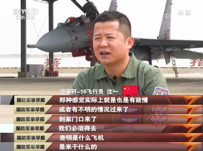空軍殲-16飛行員 沈一:我們要到不明情況的領域或者空域去驅逐敵人,后來我們返航的時候看到了祖國的海岸線,看到最近城市的燈光之后,就(有)那種執(zhí)行完任務回家有種滿足感,有一種自豪感。