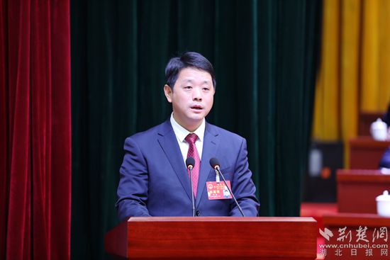 團(tuán)風(fēng)縣委副書記、代縣長(zhǎng)胡凱作報(bào)告。通訊員 供圖
