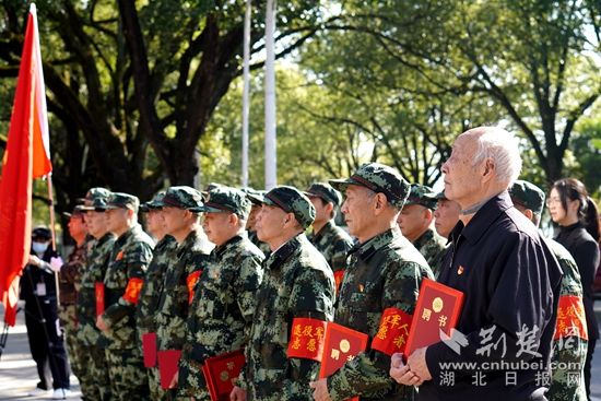 荊楚網(wǎng)(湖北日報網(wǎng))訊(通訊員 柯佳玲)10日,黃石市成立王明林退役軍人志愿服務(wù)隊。授旗儀式現(xiàn)場,首任隊長呂東和王明林一起接旗。