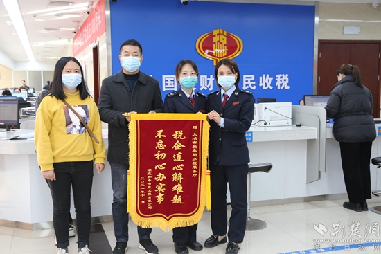 11月8日下午,湖北和豐市政工程有限公司柯經(jīng)理帶領(lǐng)會(huì)計(jì)專程趕到大冶市稅務(wù)局辦稅服務(wù)廳,將一面繡有“稅企連心解難題 不忘初心辦實(shí)事”字樣的錦旗送到了辦稅服務(wù)廳工作人員的手中。