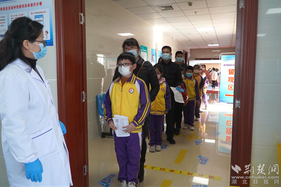 荊楚網(wǎng)(湖北日?qǐng)?bào)網(wǎng))訊(通訊員 余晨)11月11日下午,在黃岡市疾病預(yù)防控制中心新冠疫苗接種點(diǎn),3-11歲人群新冠疫苗接種工作正有序進(jìn)行。前來接種的小朋友們?cè)诩议L的陪護(hù)下,戴口罩,排好隊(duì),經(jīng)過掃碼建檔、測(cè)體溫、健康問詢等程序后進(jìn)入接種室,接種完后留觀30分鐘后無異常便可離開。整個(gè)流程高效快捷,秩序井然。
